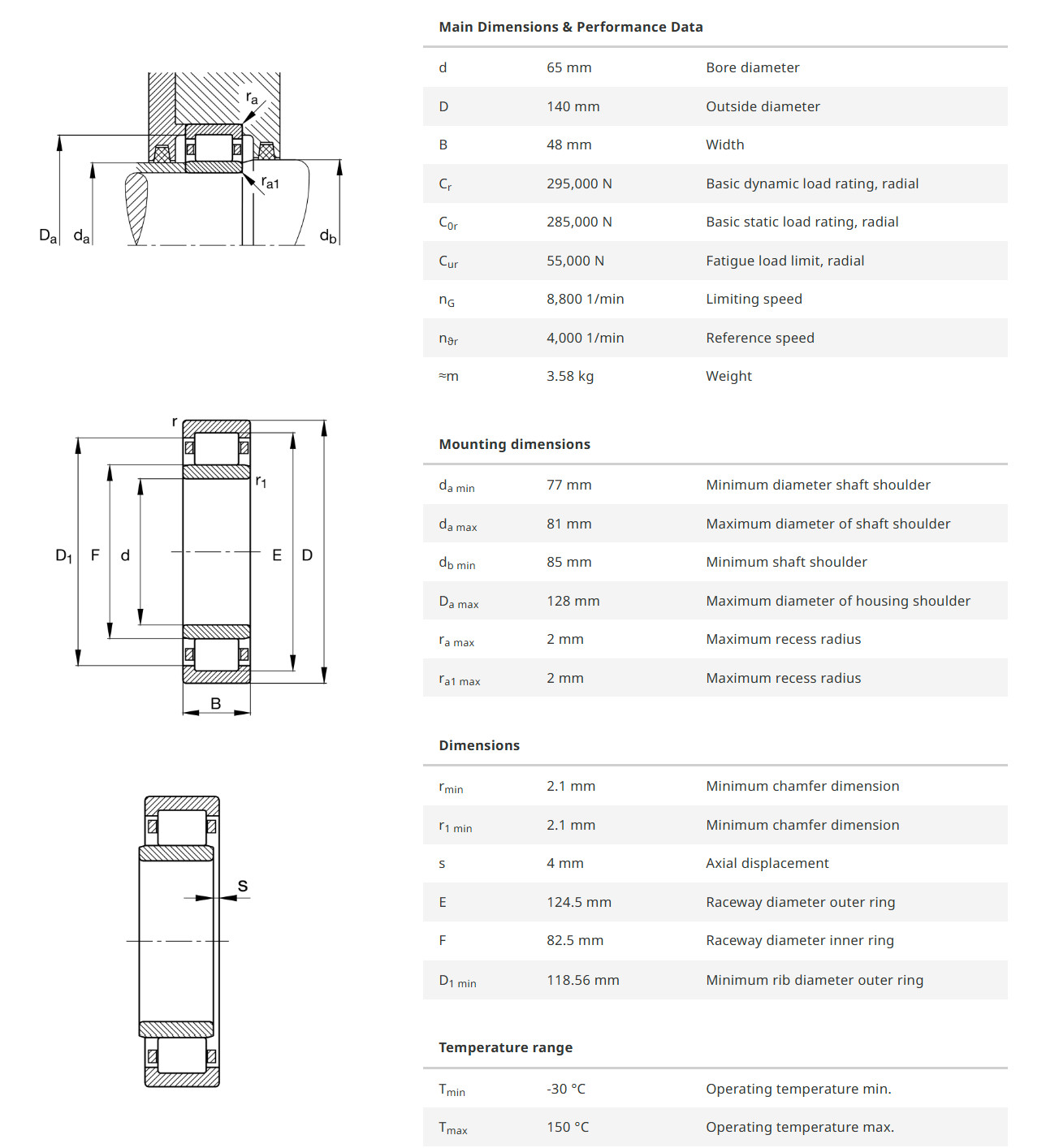 FAG NU2313-E-XL-M1 มีขนาดวงใน 65 มิล วงนอก 140 มิล หนา 48 มิล เป็นตลับลูกปืนเม็ดทรงกระบอก NU แกนในสามารถถอดหลุดออกได้ทั้งสองด้าน ทำให้สะดวกต่อการติดตั้ง รองรับแรงโหลดได้สูงมาก