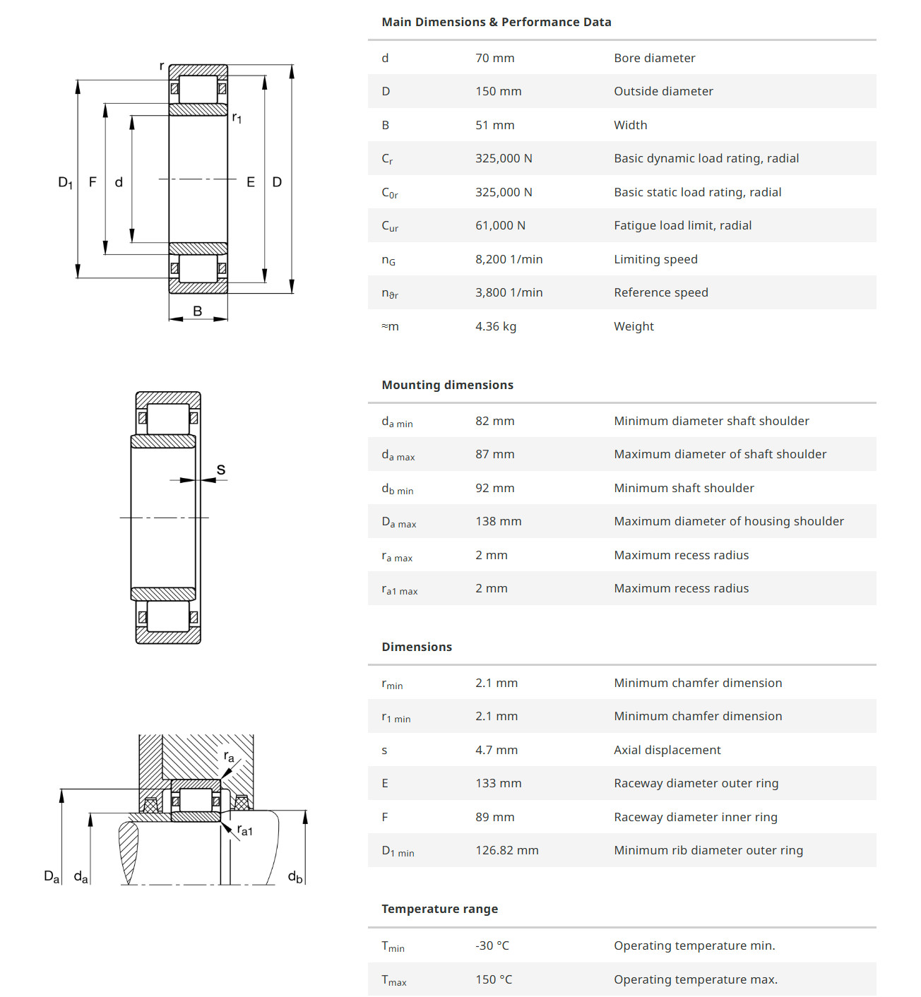 FAG NU2314-E-XL-M1-C3 มีขนาดวงใน 70 มิล วงนอก 150 มิล หนา 51 มิล เป็นตลับลูกปืนเม็ดทรงกระบอก NU แกนในสามารถถอดหลุดออกได้ทั้งสองด้าน ทำให้สะดวกต่อการติดตั้ง รองรับแรงโหลดได้สูงมาก