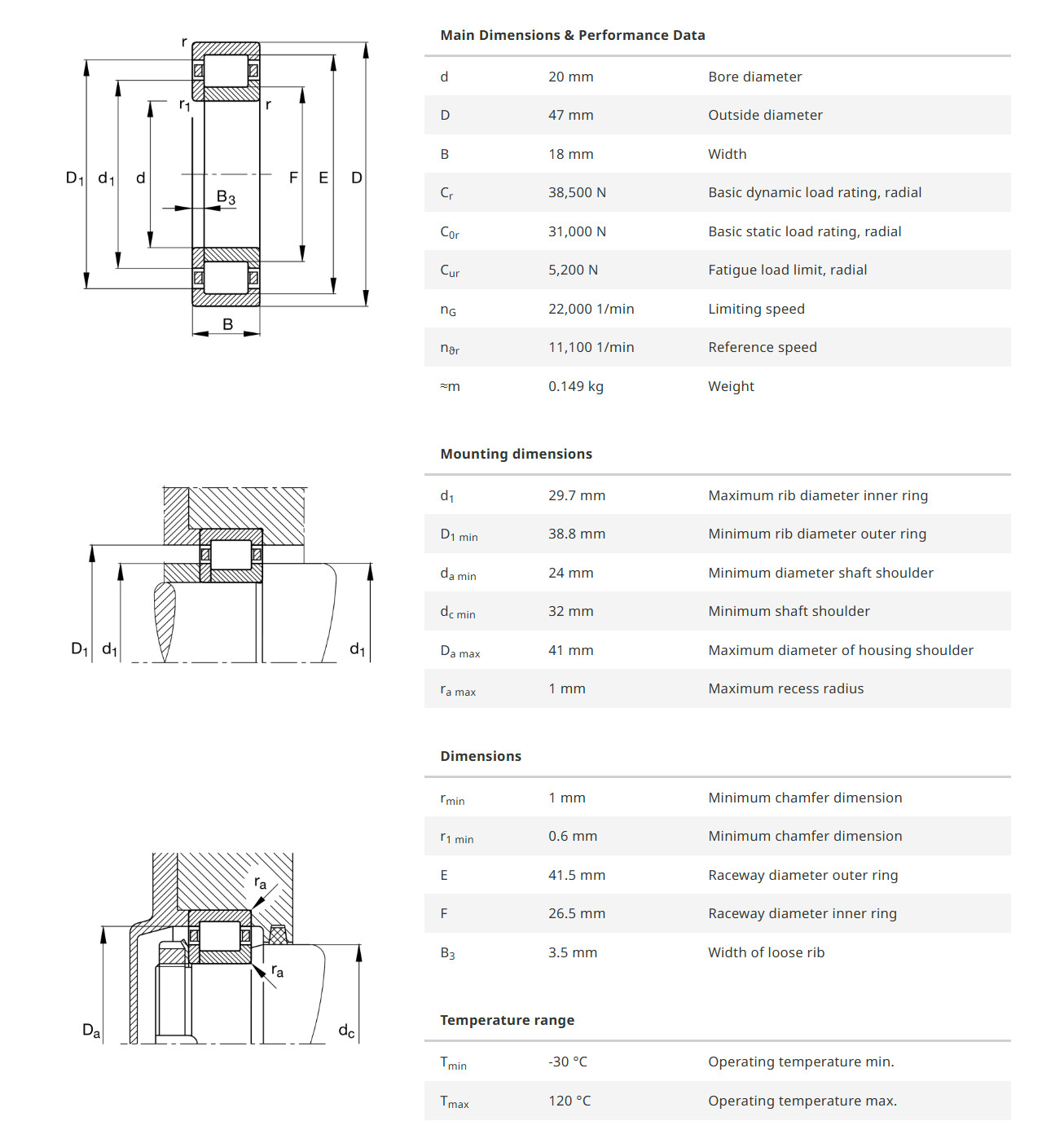 FAG NUP2204-E-XL-TVP2 มีขนาดวงใน 20 มิล วงนอก 47 มิล หนา 18 มิล เป็นตลับลูกปืนเม็ดทรงกระบอก NUP แกนในมีบ่าขึ้นมาหนึ่งด้าน อีกด้านมีแผ่นฝาประกบ ทำให้สะดวกต่อการติดตั้ง รองรับแรงโหลดได้สูงมาก