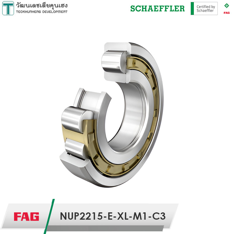 FAG NUP2215-E-XL-M1-C3 มีขนาดวงใน 75 มิล วงนอก 130 มิล หนา 31 มิล เป็นตลับลูกปืนเม็ดทรงกระบอก NUP แกนในมีบ่าขึ้นมาหนึ่งด้าน อีกด้านมีแผ่นฝาประกบ ทำให้สะดวกต่อการติดตั้ง รองรับแรงโหลดได้สูงมาก