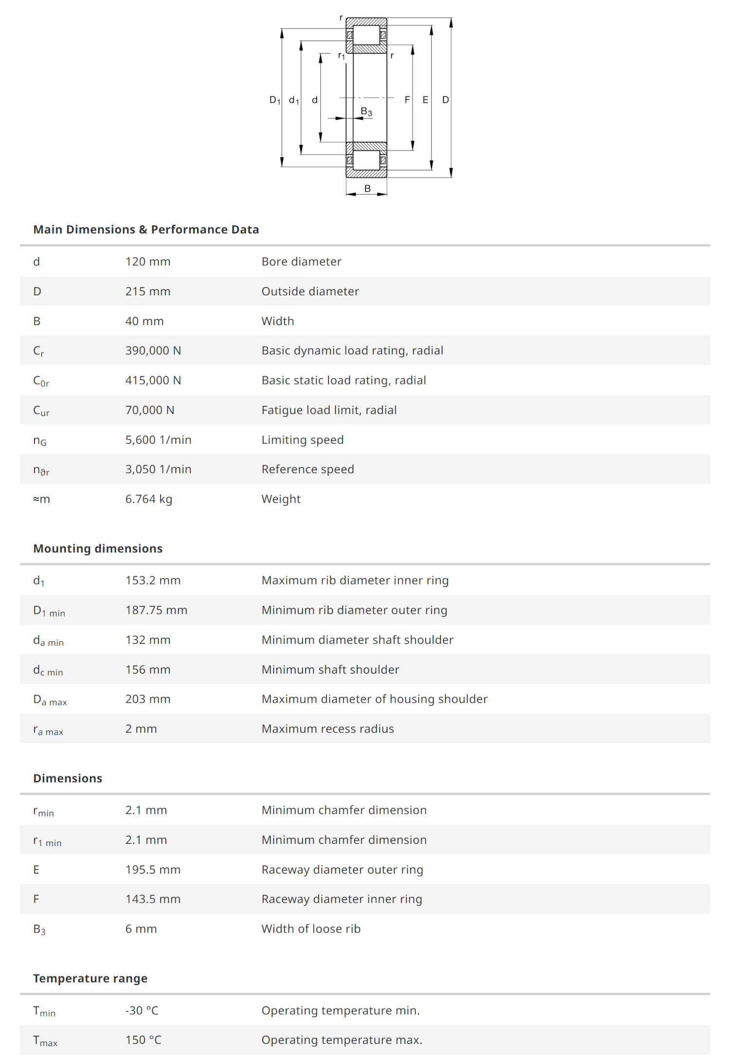 FAG NUP224-E-XL-M1 มีขนาดวงใน 120 มิล วงนอก 215 มิล หนา 40 มิล เป็นตลับลูกปืนเม็ดทรงกระบอก NUP แกนในมีบ่าขึ้นมาหนึ่งด้าน อีกด้านมีแผ่นฝาประกบ ทำให้สะดวกต่อการติดตั้ง รองรับแรงโหลดได้สูงมาก
