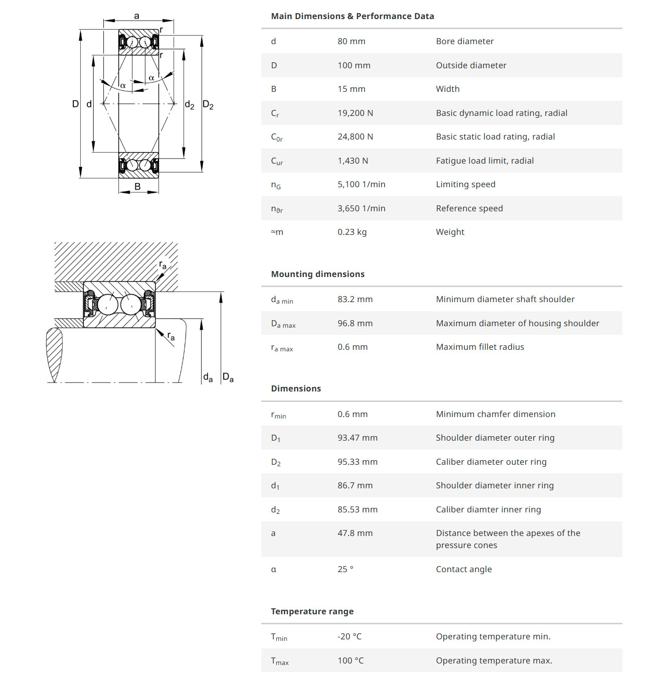 INA 3816-2Z มีขนาดวงใน 80 มิล วงนอก 100 มิล หนา 15 มิล เป็นตลับลูกปืนเม็ดกลมสองแถว มุมสัมผัส 25° องศา มีซีลกันฝุ่นแบบไม่สัมผัสปิดสองด้าน เหมาะสำหรับรองรับแรงโหลดได้มากทั้งในแนวรัศมีและแนวแกน