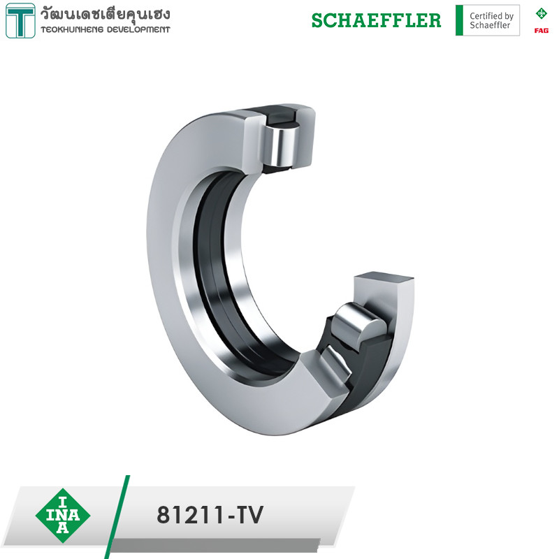 INA 81211-TV มีขนาดวงใน 55 มิล วงนอก 90 มิล หนารวม 25 มิล เป็นตลับลูกปืนกันรุนเม็ดทรงกระบอก มีฝาประกบ 2 ด้าน ที่สามารถแยกถอดประกอบได้ ทำให้สะดวกต่อการติดตั้ง สามารถรองรับแรงโหลดได้สูงมากในแนวแกน