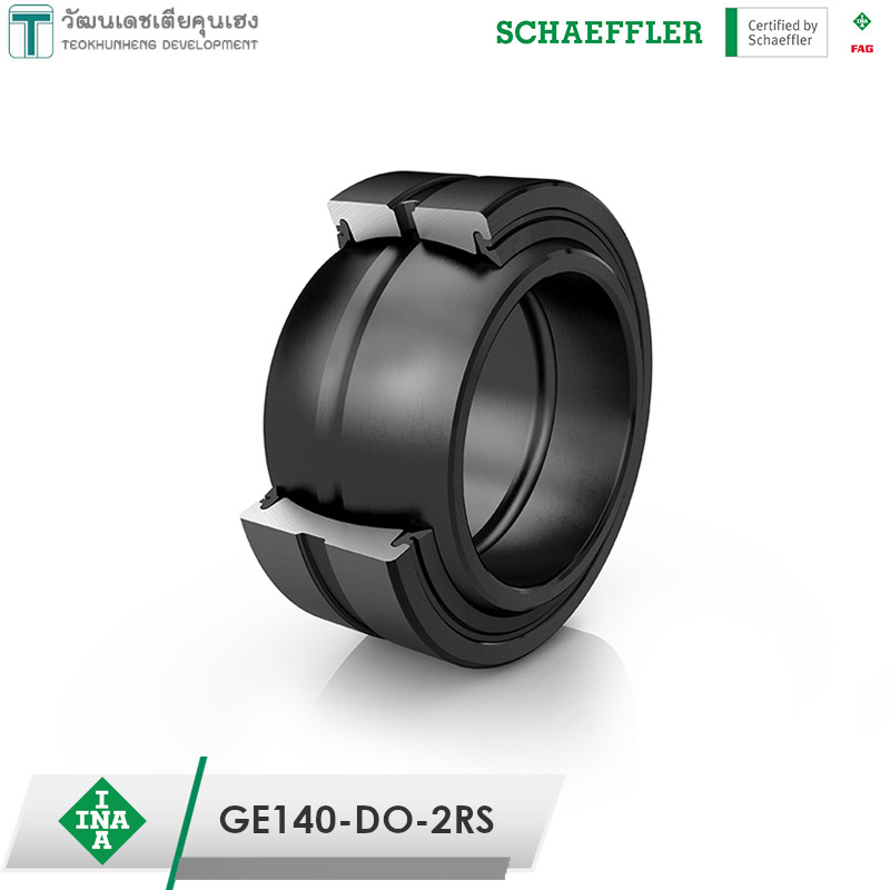 INA GE140-DO มีขนาดวงใน 140 มิล วงนอก 210 มิล หนา 90 มิล เป็นตลับลูกปืนตาเหลือก หรือตลับลูกปืนกาบเพลาผิวโค้ง แบบปรับแนวได้เอง มีซีลกันฝุ่น เหมาะสำหรับงานที่มี misalignment รองรับแรงโหลดในแนวรัศมีและแนวแกนได้อย่างมีประสิทธิภาพ ตลับลูกปืนประเภทนี้จะไม่มีเม็ดลูกปืน