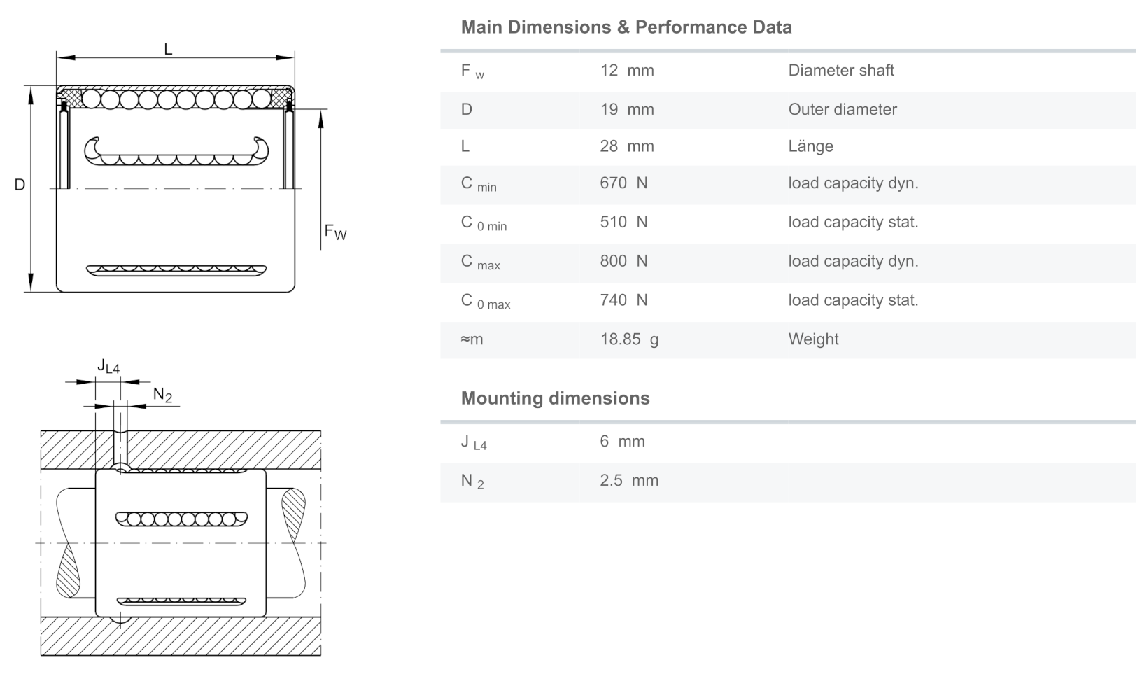 INA KH12-PP มีขนาดวงใน 12 มิล วงนอก 19 มิล ความยาว 28 มิล เป็นตลับลูกปืนเคลื่อนที่เชิงเส้น Linear Ball Bearing มีซีลกันฝุ่น มักพบได้บ่อยในเครื่องจักรอุตสาหกรรมอาหารและบรรจุภัณฑ์