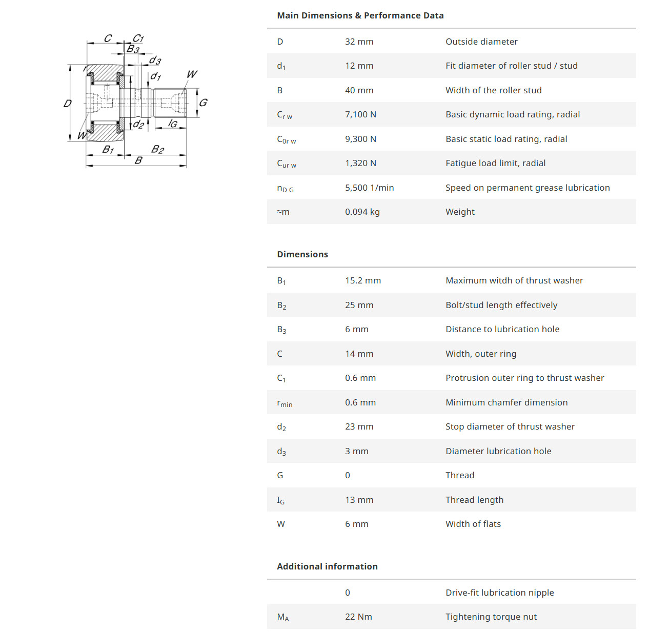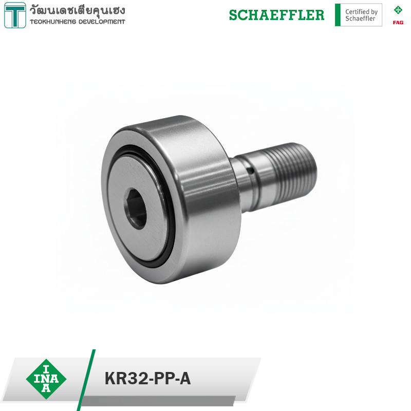 INA KR32-PP-A มีขนาด วงนอก 32 มิล เป็นตลับลูกปืนแทรคโรลเลอร์ (Track Roller) แบบมีแกน เม็ดลูกปืนทรงกระบอกเล็ก ซึ่งออกแบบมาให้สามารถวิ่งบนรางหรือระบบคอนเวเยอร์ต่างๆ ได้ทุกประเภท โดยมีขนาดของวงนอกที่หนาเพื่อรองรับแรงโหลดในแนวรัศมีได้สูงมาก