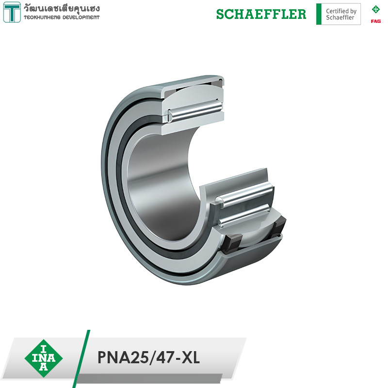 INA PNA25/47-XL มีขนาดวงใน 25 มิล วงนอก 47 มิล หนา 20 มิล เป็นตลับลูกปืนเม็ดเข็มประเภทให้ตัวได้ เม็ดลูกปืนทรงกระบอกเล็ก (เม็ดเข็ม) มีแกนใน รองรับการใช้งานในพื้นที่ที่จำกัด