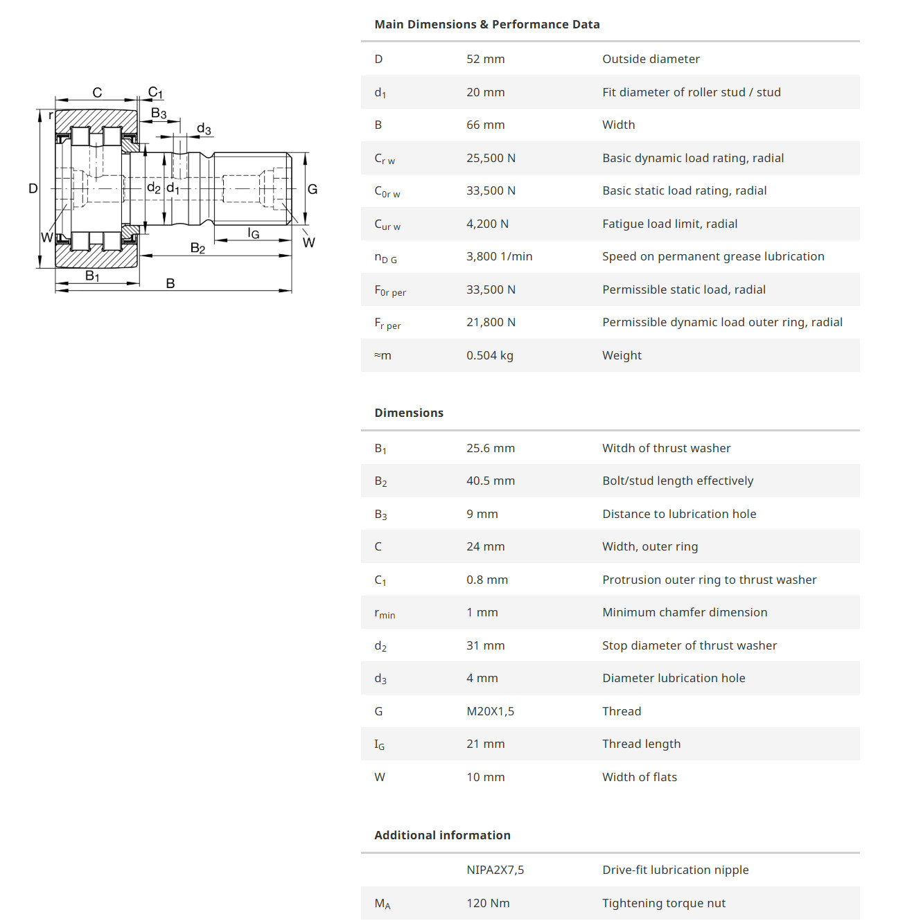 INA PWKR52-2RS-XL มีขนาด วงนอก 52 มิล เป็นตลับลูกปืนแทรคโรลเลอร์ (Track Roller) แบบมีแกน เม็ดลูกปืนทรงกระบอกสองแถวแบบเรียงติดกัน มีซีลกันฝุ่น ซึ่งออกแบบมาให้สามารถวิ่งบนรางหรือระบบคอนเวเยอร์ต่างๆ ได้ทุกประเภท โดยมีขนาดของวงนอกที่หนาเพื่อรองรับแรงโหลดในแนวรัศมีได้สูงมาก และยังสามารถรองรับแรงในแนวแกนได้อีกด้วย