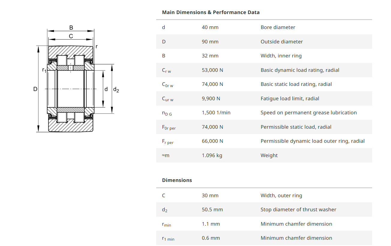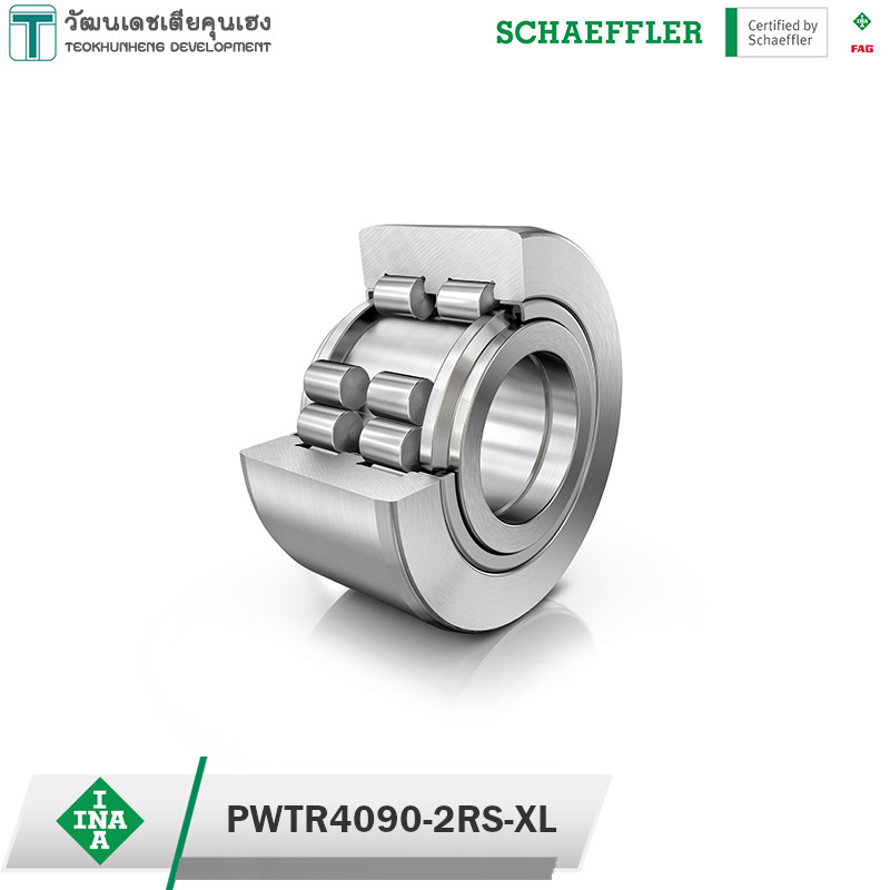 INA PWTR4090-2RS-XL มีขนาดวงใน 40 มิล วงนอก 90 มิล หนา 32 มิล เป็นตลับลูกปืนแทรคโรลเลอร์ (Track Roller) แบบเม็ดทรงกระบอกสองแถว เม็ดลูกปืนเรียงติดกัน ซึ่งออกแบบมาให้สามารถวิ่งบนรางหรือระบบคอนเวเยอร์ต่างๆ ได้ทุกประเภท โดยมีขนาดของวงนอกที่หนาเพื่อรองรับแรงโหลดในแนวรัศมีได้สูงมาก และยังสามารถรองรับแรงในแนวแกนได้อีกด้วย