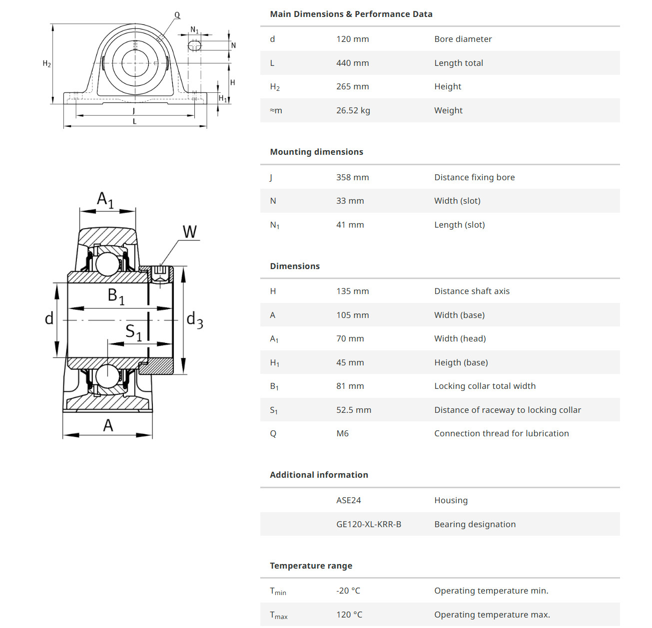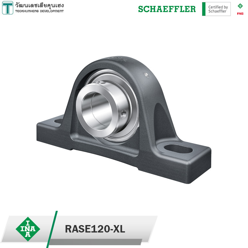 INA RASE120-XL เป็นตลับลูกปืนที่มาพร้อมเสื้อตุ๊กตาเหล็กหล่อ แบบขาตั้ง รูเพลา 120 มิล สามารถล็อคเพลาได้ด้วยการใช้ปลอกคอลล่า มีซีลป้องกันฝุ่น