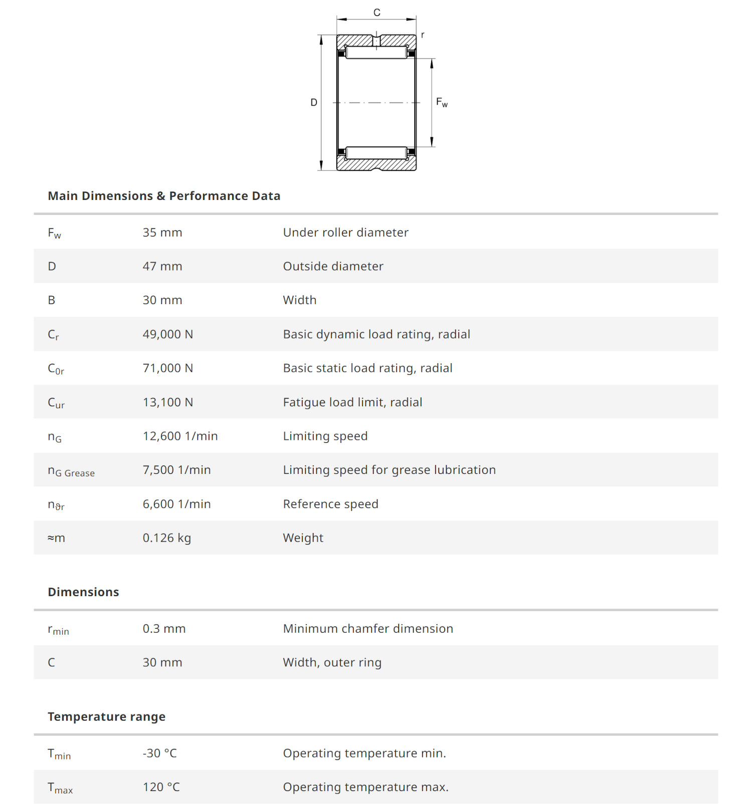 INA RNA6906-XL มีขนาดวงใน 35 มิล วงนอก 47 มิล หนา 30 มิล เป็นตลับลูกปืนเม็ดเข็มประเภท Machined เม็ดลูกปืนทรงกระบอกเล็กแถวเดียว ไม่มีแกนใน ทำให้ง่ายต่อการติดตั้งและบำรุงรักษา รองรับแรงโหลดได้สูง