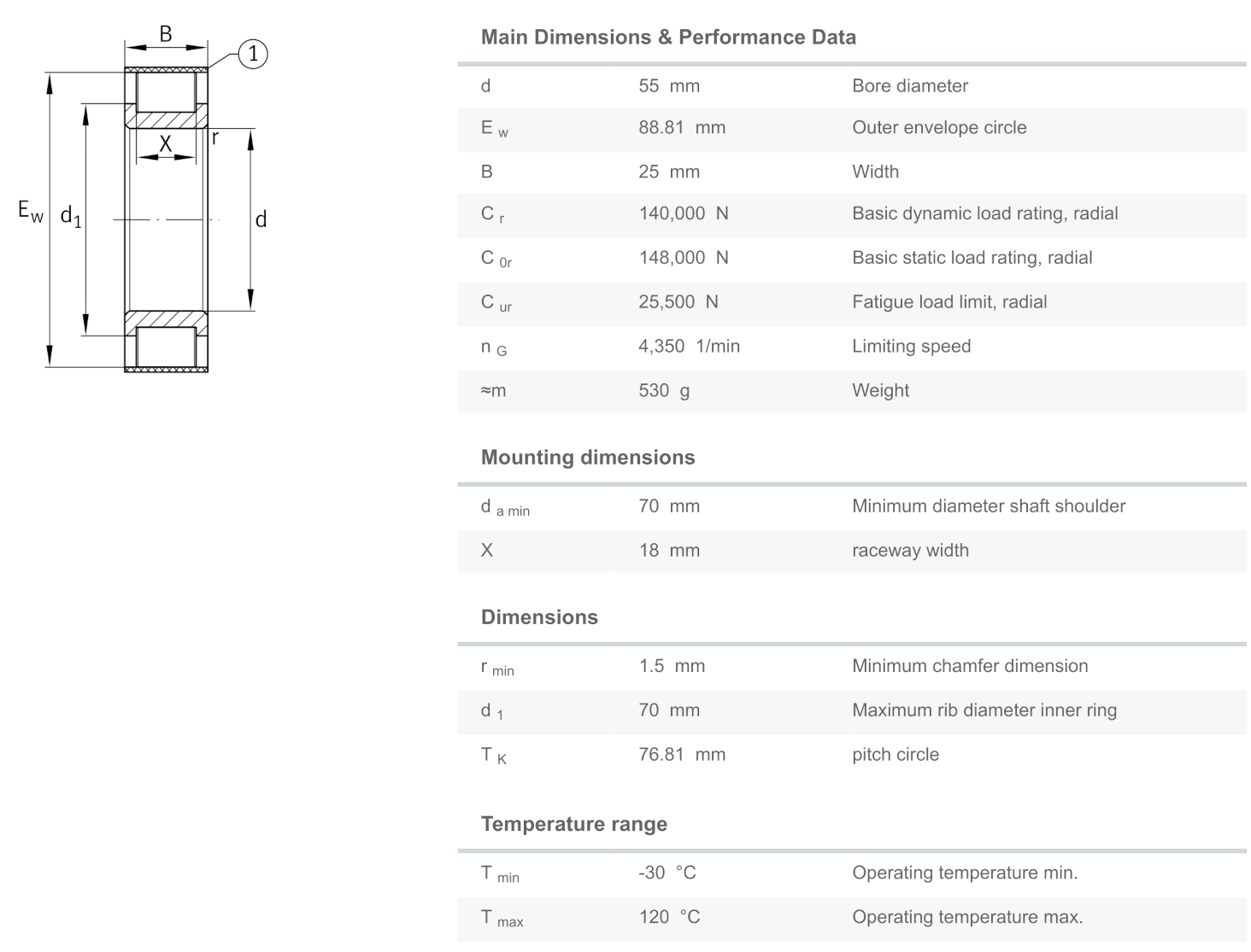 INA RSL182211-A-XL มีขนาดวงใน 55 มิล โตนอก 88.81 มิล หนา 25 มิล เป็นตลับลูกปืนเม็ดทรงกระบอกแบบไร้รัง เม็ดลูกปืนเรียงชิดติดกัน ไม่มีแกนนอก(Outer ring) ความทนทานสูง รองรับแรงโหลดได้สูงมาก