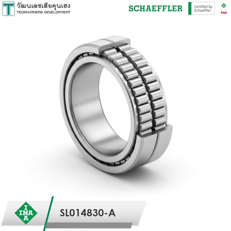 INA SL014830-A มีขนาดวงใน 150 มิล วงนอก 190 มิล หนา 40 มิล เป็นตลับลูกปืนเม็ดทรงกระบอกสองแถวแบบไร้รัง เม็ดลูกปืนเรียงชิดติดกัน ตลับลูกปืนมีความทนทานสูง รับแรงโหลดได้สูงมาก ใช้กับงานอุตสาหรกรรมหนัก