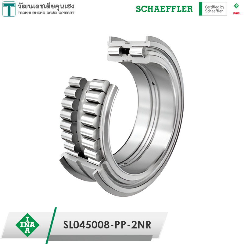 INA SL045008-PP-2NR มีขนาดวงใน 40 มิล วงนอก 68 มิล หนา 38 มิล เป็นตลับลูกปืนเม็ดทรงกระบอกสองแถวแบบไร้รัง เม็ดลูกปืนเรียงชิดติดกัน มีซีลกันฝุ่นและร่องแหวนที่วงนอก และเนื่องจากการที่ไม่มีรังจับลูกปืน ทำให้สามารถใส่เม็ดลูกปืนได้มากขึ้น จึงความทนทานสูง รองรับแรงโหลดได้มาก มักใช้งานกับรอกและเครน