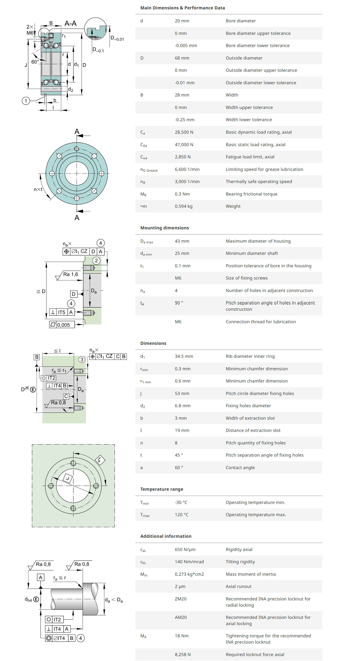 INA ZKLF2068-2RS-XL มีขนาดวงใน 20 มิล วงนอก 68 มิล หนา 28 มิล เป็นตลับลูกปืนความเที่ยงตรงสูง เม็ดกลมแบบมีมุมสัมผัส 60° องศา ประกบสองแถว มีซีลทั้งสองด้าน มีค่าความแม่นยำสูง ใช้สำหรับงานซัพพอร์ตบอลสกรู รองรับแรงในแนวแกนได้เป็นอย่างดี