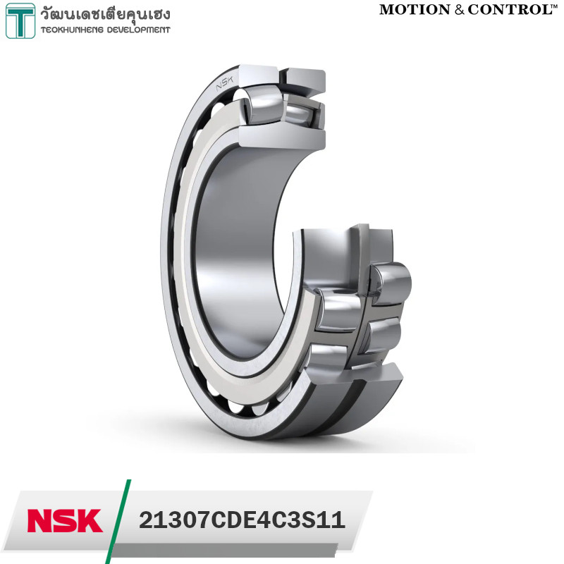 NSK 21307CDE4C3S11 มีขนาดวงใน 35 มิล วงนอก 80 มิล หนา 21 มิล เป็นตลับลูกปืนเม็ดโค้งสองแถวแบบให้ตัวได้ แกนในรูตรง มีรูสำหรับเติมจารบีได้ สามารถรองรับแรงโหลดสูงทั้งในแนวรัศมีและแนวแกน