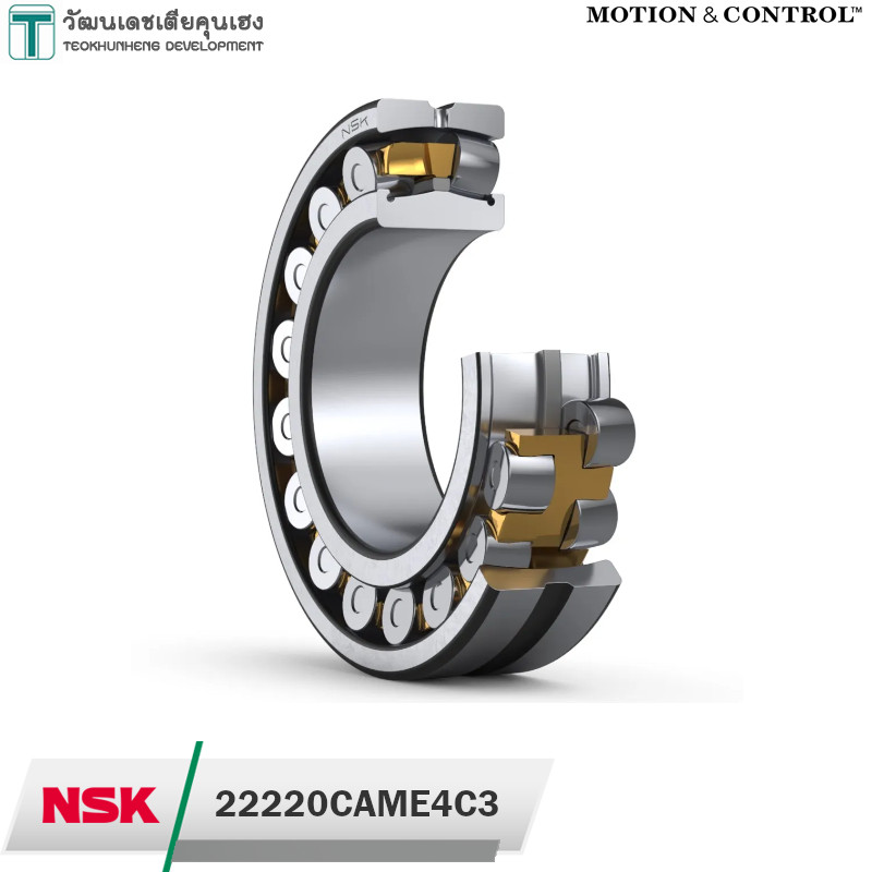 NSK 22220 CAME4C3 มีขนาดวงใน 100 มิล วงนอก 180 มิล หนา 46 มิล เป็นตลับลูกปืนเม็ดโค้งสองแถวแบบให้ตัวได้ เป็นลูกปืนแกนในรูตรง รังทองเหลือง มีรูสำหรับเติมจารบีได้ สามารถรองรับแรงโหลดสูงทั้งในแนวรัศมีและแนวแกน