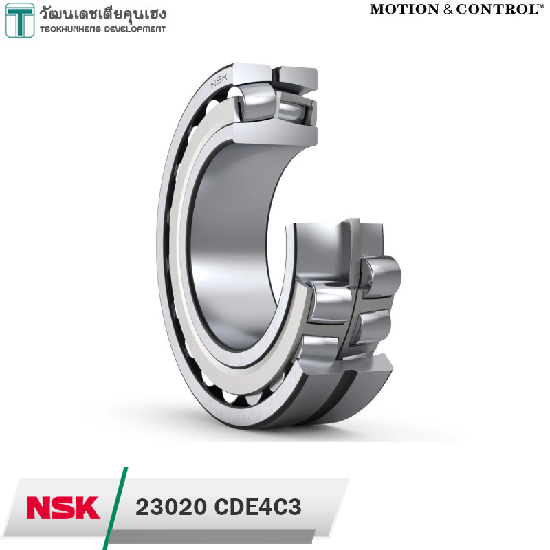 NSK 23020 CDE4C3 มีขนาดวงใน 100 มิล วงนอก 150 มิล หนา 37 มิล เป็นตลับลูกปืนเม็ดโค้งสองแถวแบบให้ตัวได้ เป็นลูกปืนแกนในรูตรง มีรูสำหรับเติมจารบีได้ สามารถรองรับแรงโหลดสูงทั้งในแนวรัศมีและแนวแกน