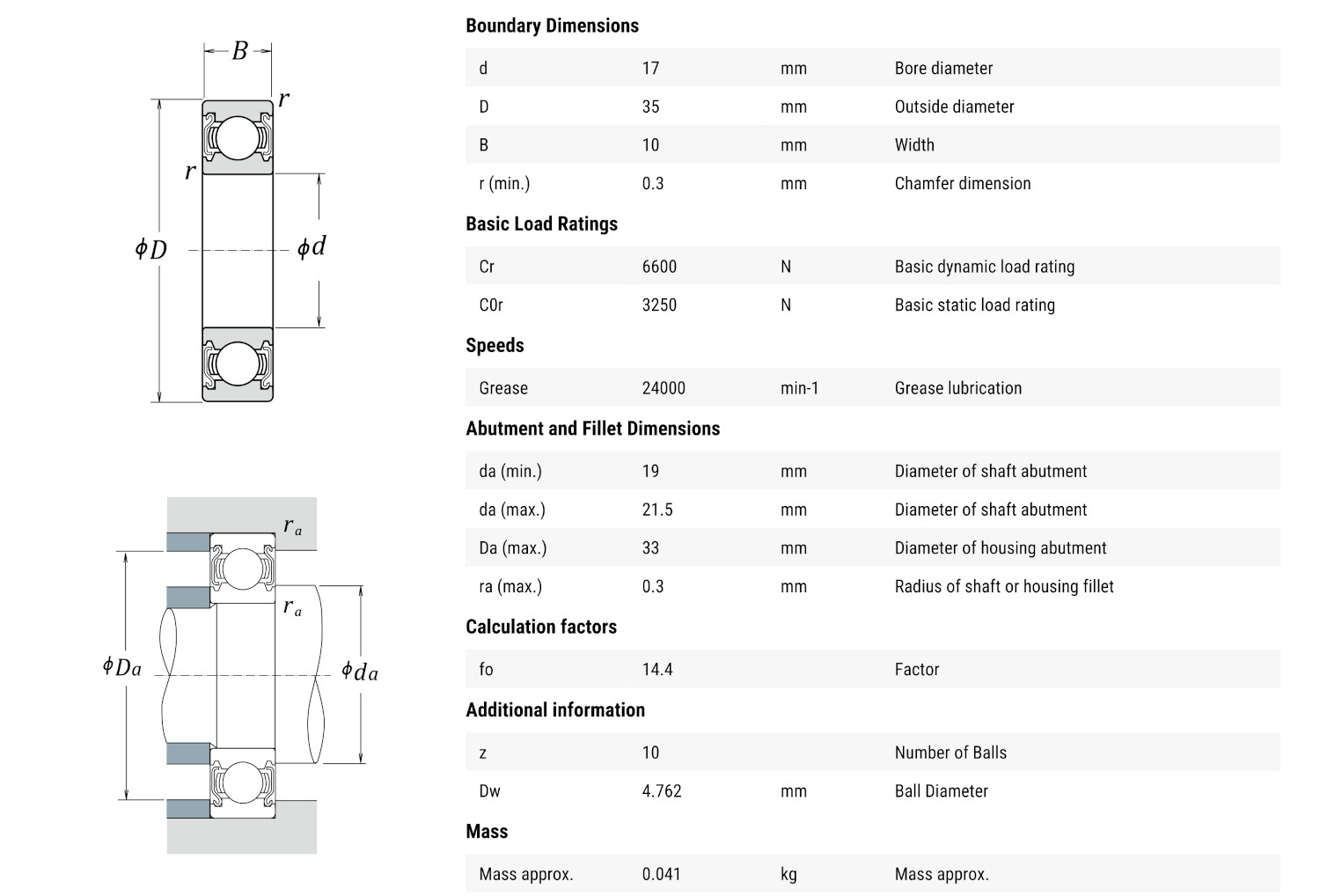 NSK 6003ZZCM มีขนาดวงใน 17 มิล วงนอก 35 มิล หนา 10 มิล เป็นตลับลูกปืนเม็ดกลมร่องลึก ฝาเหล็กสองด้าน แถวเดียว มีแรงเสียดทานต่ำ เสียงเงียบ สามารถรองรับความเร็วรอบสูง รองรับแรงทั้งแนวรัศมีและแนวแกน