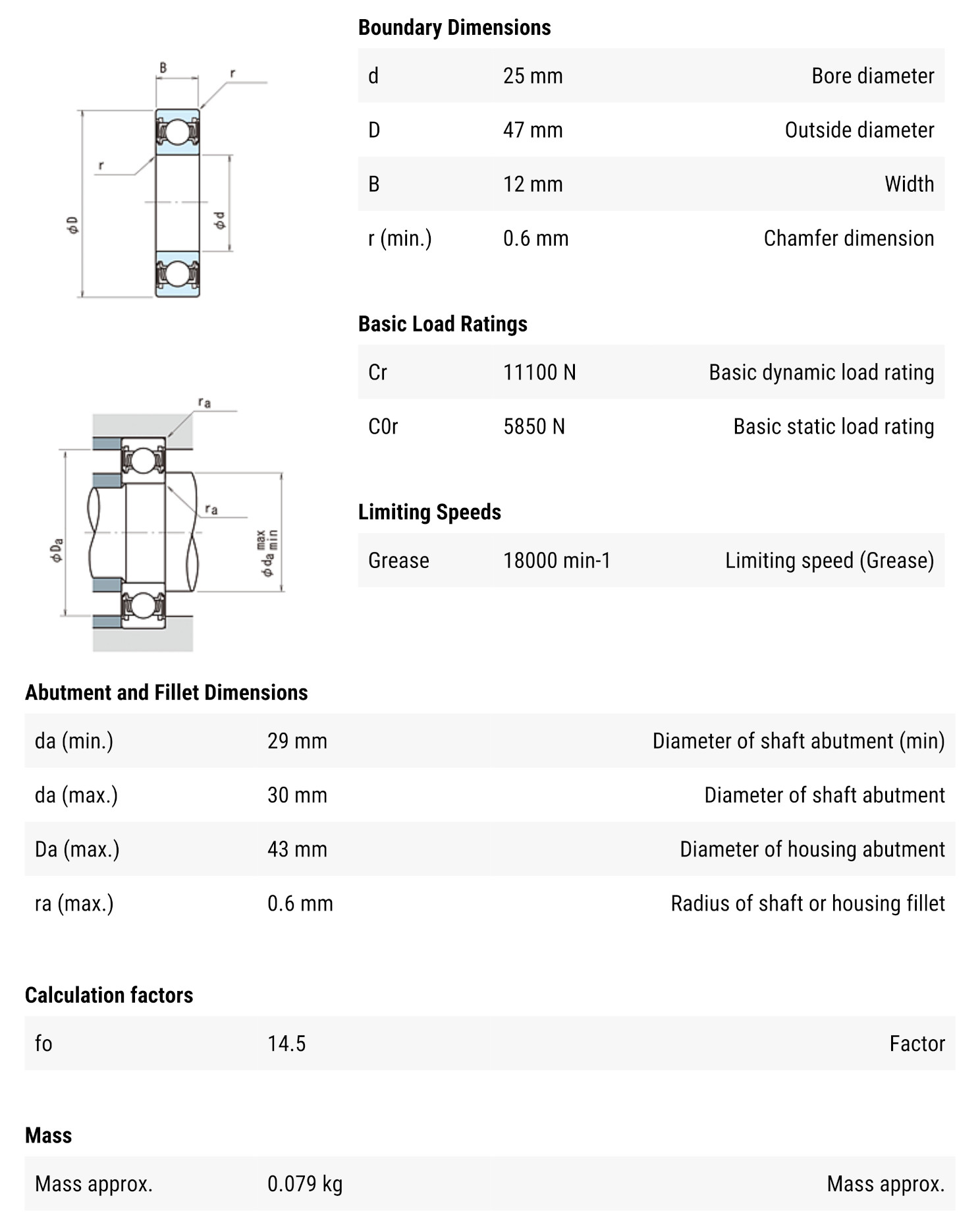 NSK 6005 VVCM มีขนาดวงใน 25 มิล วงนอก 47 มิล หนา 12 มิล เป็นตลับลูกปืนเม็ดกลมร่องลึก ฝายางแบบไม่สัมผัสสองด้าน แถวเดียว มีแรงเสียดทานต่ำ เสียงเงียบ สามารถรองรับความเร็วรอบสูง รองรับแรงทั้งแนวรัศมีและแนวแกน