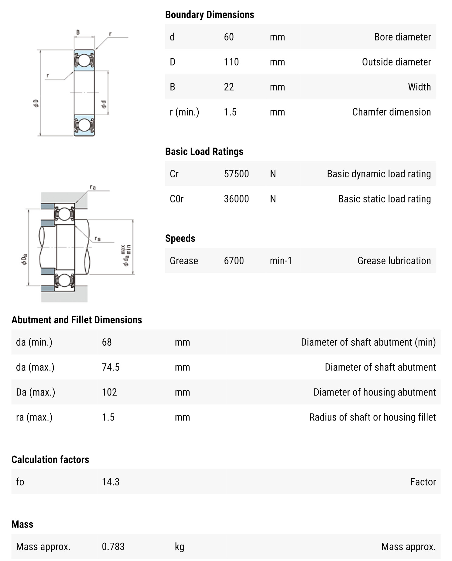 ชื่ออื่นๆ ที่เหมือนกัน:: 6212-2Z/C3, 6212-2ZR-C3, 6212-2Z-C3