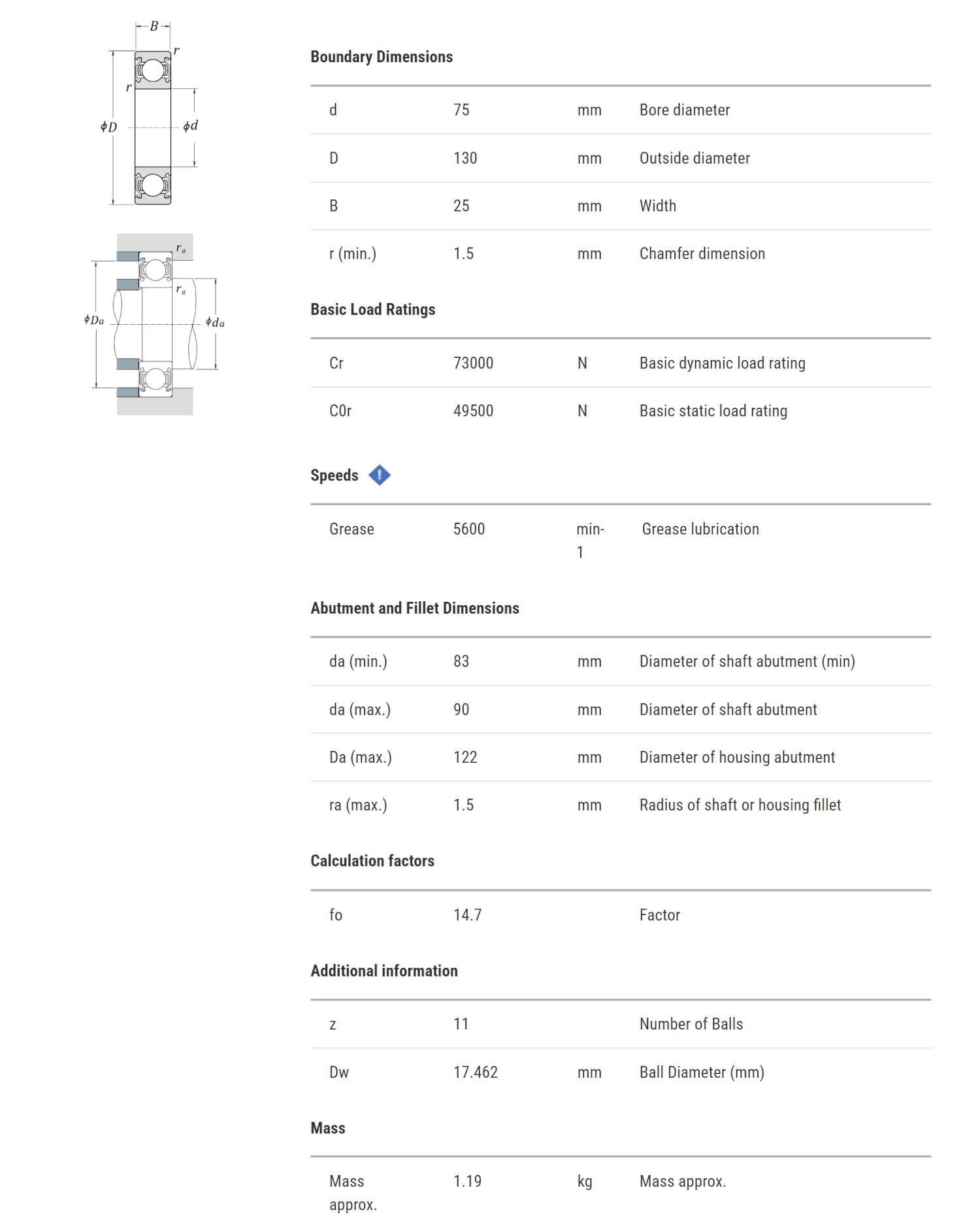 ชื่ออื่นๆ ที่เหมือนกัน: 6215-2Z, 6215-2ZR