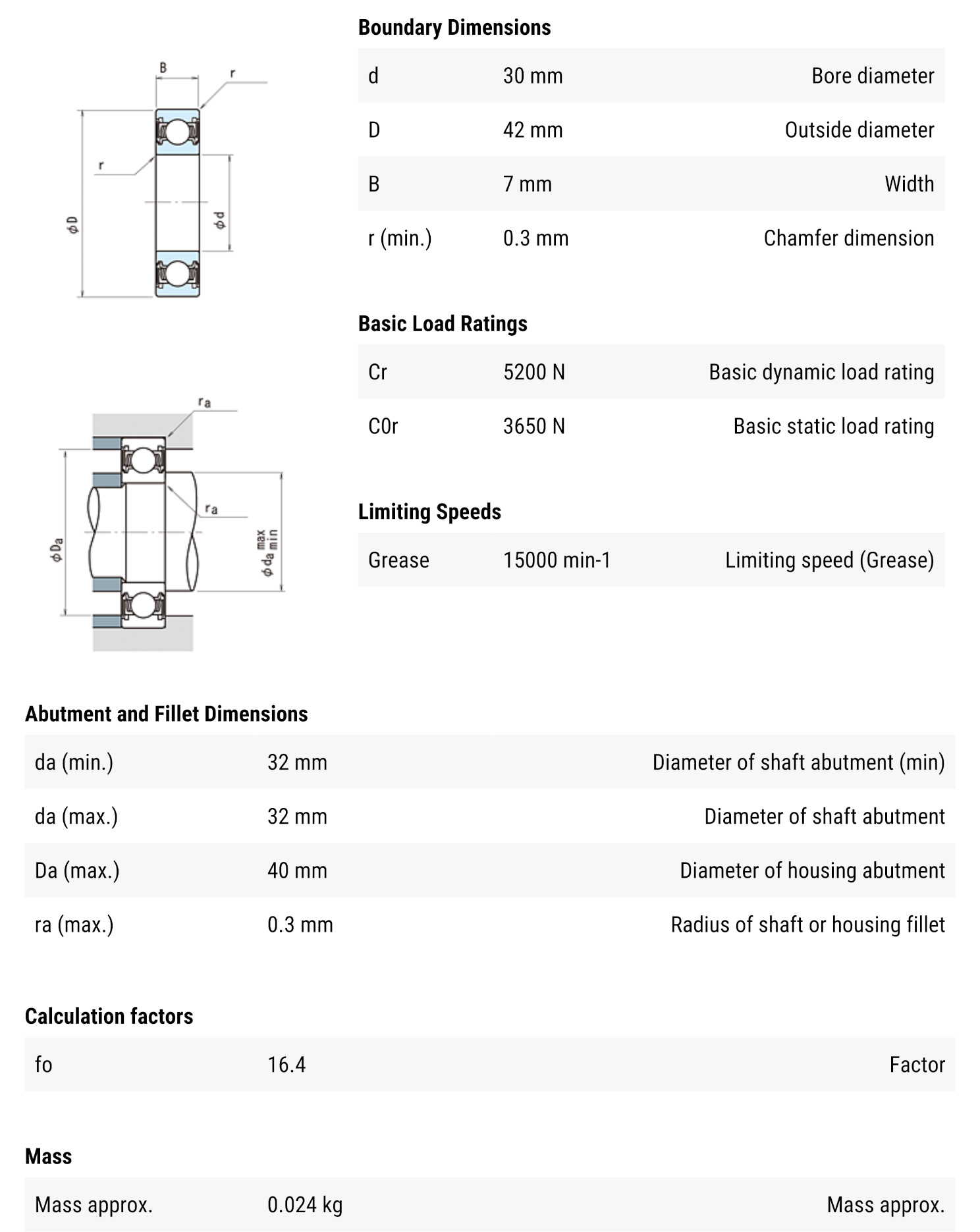 NSK 6806 VV มีขนาดวงใน 30 มิล วงนอก 42 มิล หนา 7 มิล เป็นตลับลูกปืนเม็ดกลมร่องลึก ฝายางแบบไม่สัมผัสสองด้าน แถวเดียว มีแรงเสียดทานต่ำ เสียงเงียบ สามารถรองรับความเร็วรอบสูง รองรับแรงทั้งแนวรัศมีและแนวแกน