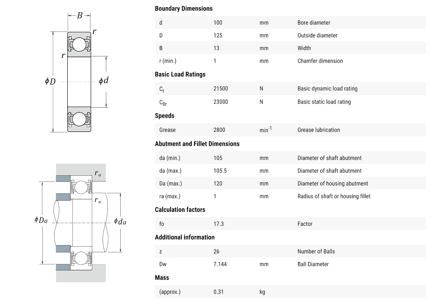NSK 6820DD มีขนาดวงใน 100 มิล วงนอก 125 มิล หนา 13 มิล เป็นตลับลูกปืนเม็ดกลมร่องลึก ฝายางสองด้าน แถวเดียว มีแรงเสียดทานต่ำ เสียงเงียบ สามารถรองรับความเร็วรอบสูง รองรับแรงทั้งแนวรัศมีและแนวแกน