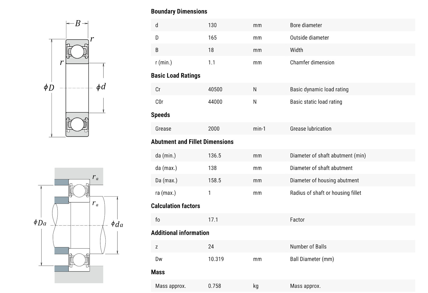 ชื่ออื่นๆ ที่เหมือนกัน: 6826-LL, 61826-2RS, 61826-2RS1