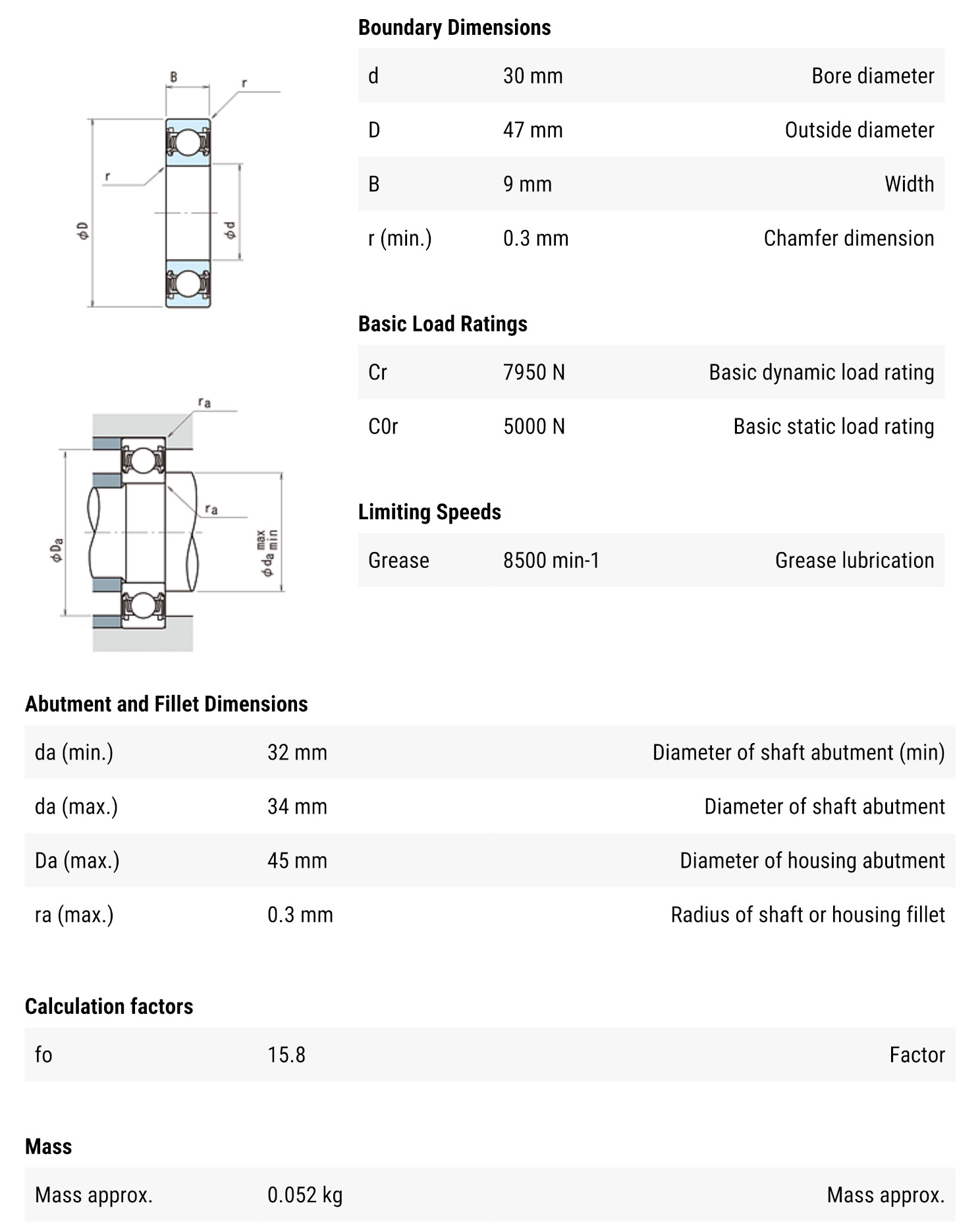 NSK 6906 DDUCM มีขนาดวงใน 30 มิล วงนอก 47 มิล หนา 9 มิล เป็นตลับลูกปืนเม็ดกลมร่องลึก ฝายางแบบสัมผัสสองด้าน แถวเดียว มีแรงเสียดทานต่ำ เสียงเงียบ สามารถรองรับความเร็วรอบสูง รองรับแรงทั้งแนวรัศมีและแนวแกน