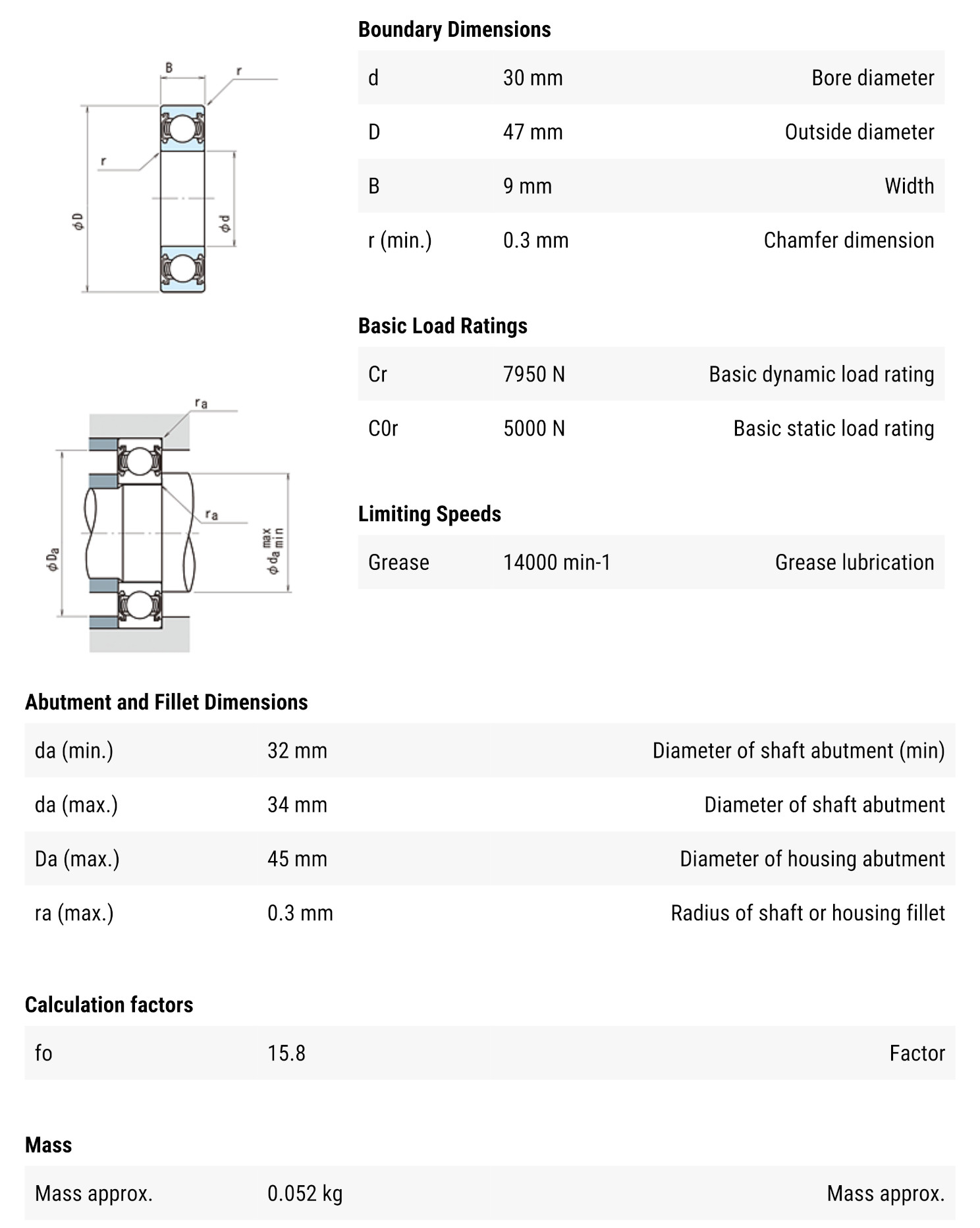 NSK 6906 ZZCM มีขนาดวงใน 30 มิล วงนอก 47 มิล หนา 9 มิล เป็นตลับลูกปืนเม็ดกลมร่องลึก ฝาเหล็กสองด้าน แถวเดียว มีแรงเสียดทานต่ำ เสียงเงียบ สามารถรองรับความเร็วรอบสูง รองรับแรงทั้งแนวรัศมีและแนวแกน