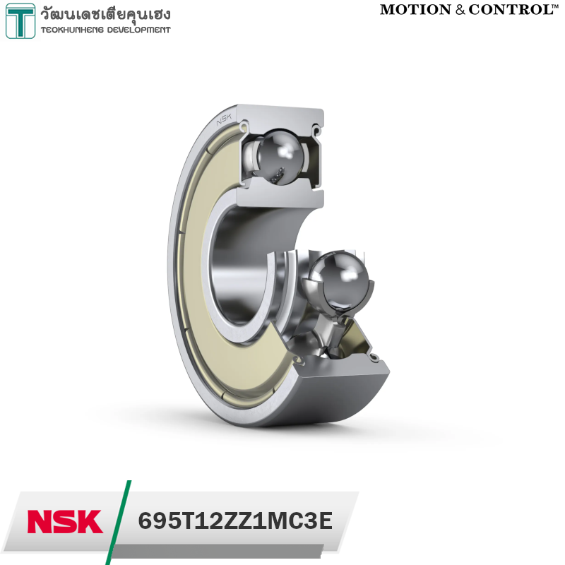 NSK 695T12ZZ1MC3E มีขนาดวงใน 5 มิล วงนอก 13 มิล หนา 4 มิล เป็นตลับลูกปืนเม็ดกลมร่องลึกขนาดเล็กพิเศษ ฝาเหล็กสองด้าน มีแรงเสียดทานต่ำ เสียงเงียบ สามารถรองรับความเร็วรอบสูง รองรับแรงทั้งแนวรัศมีและแนวแกน