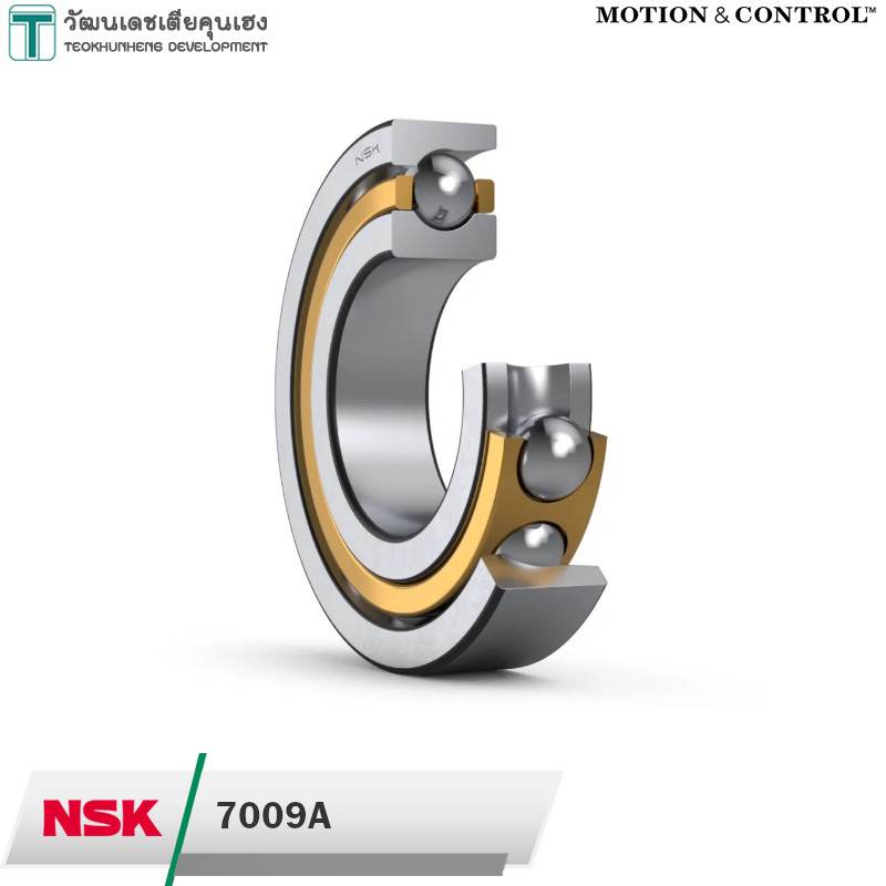 NSK 7009 A มีขนาดวงใน 45 มิล วงนอก 75 มิล หนา 16 มิล เป็นตลับลูกปืนเม็ดกลมแบบมุมสัมผัส 30 องศา แถวเดียว ไม่มีฝาปิด รังทองเหลือง รองรับแรงโหลดได้ทั้งในแนวรัศมีและแนวแกนพร้อมๆ กันได้ดี