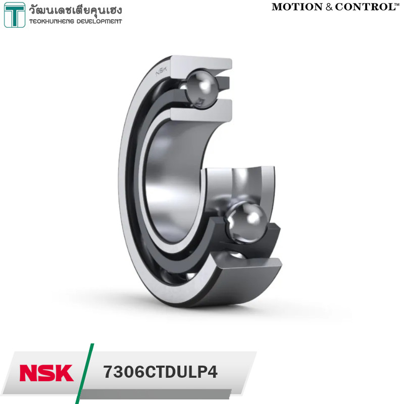NSK 7306CTDULP4 มีขนาดวงใน 30 มิล วงนอก 72 มิล หนา 19 มิล เป็นตลับลูกปืนความเที่ยงตรงสูงเม็ดกลมแบบมุมสัมผัส 15° องศา รุ่นประกบคู่ มีค่าความแม่นยำ P4 รองรับความเร็วรอบได้สูงมาก