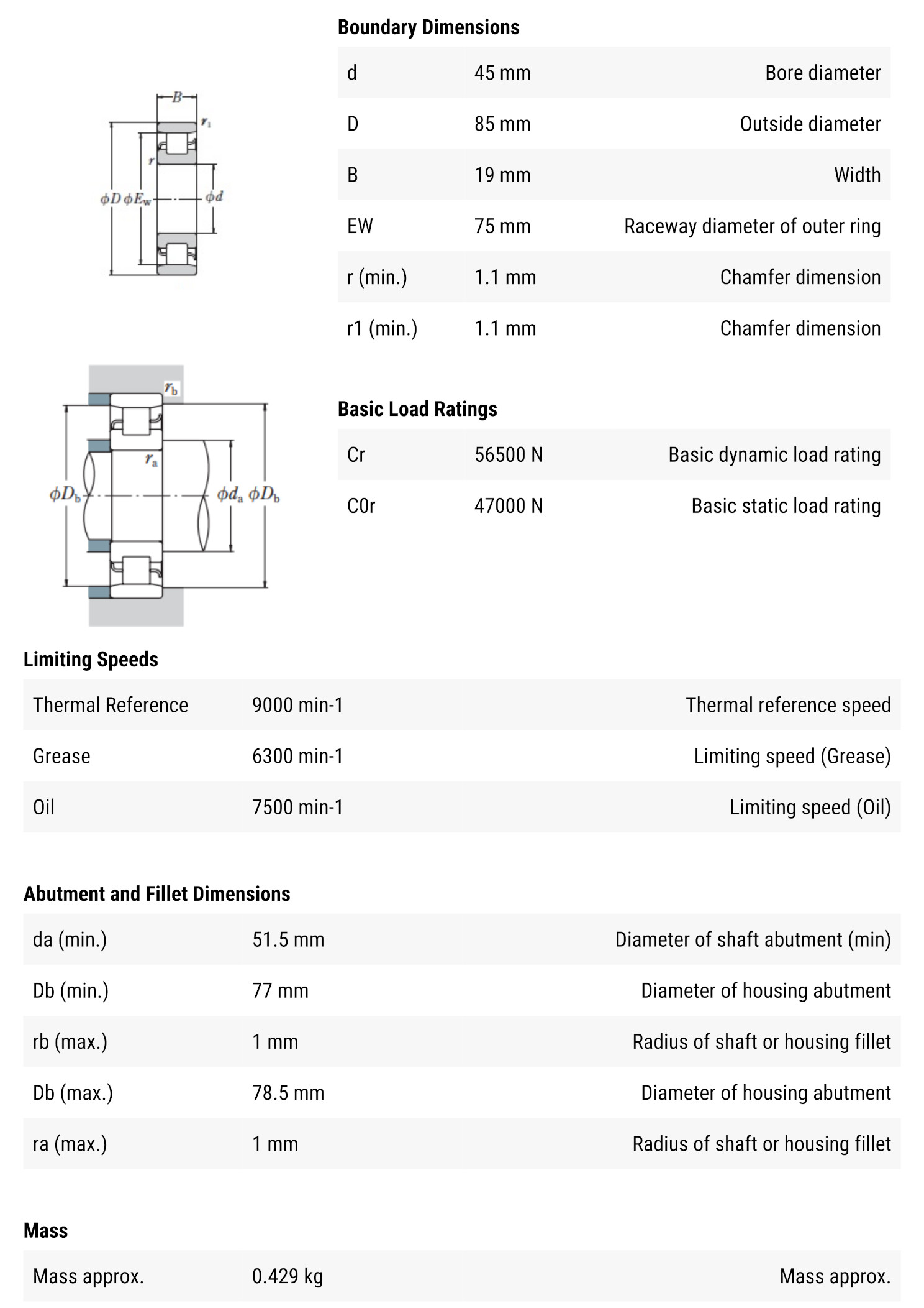 NSK N 209 W มีขนาดวงใน 45 มิล วงนอก 85 มิล หนา 19 มิล เป็นตลับลูกปืนเม็ดทรงกระบอก N แกนนอกสามารถถอดหลุดออกได้ทั้งสองด้าน ทำให้สะดวกต่อการติดตั้ง รองรับแรงโหลดได้สูงมาก