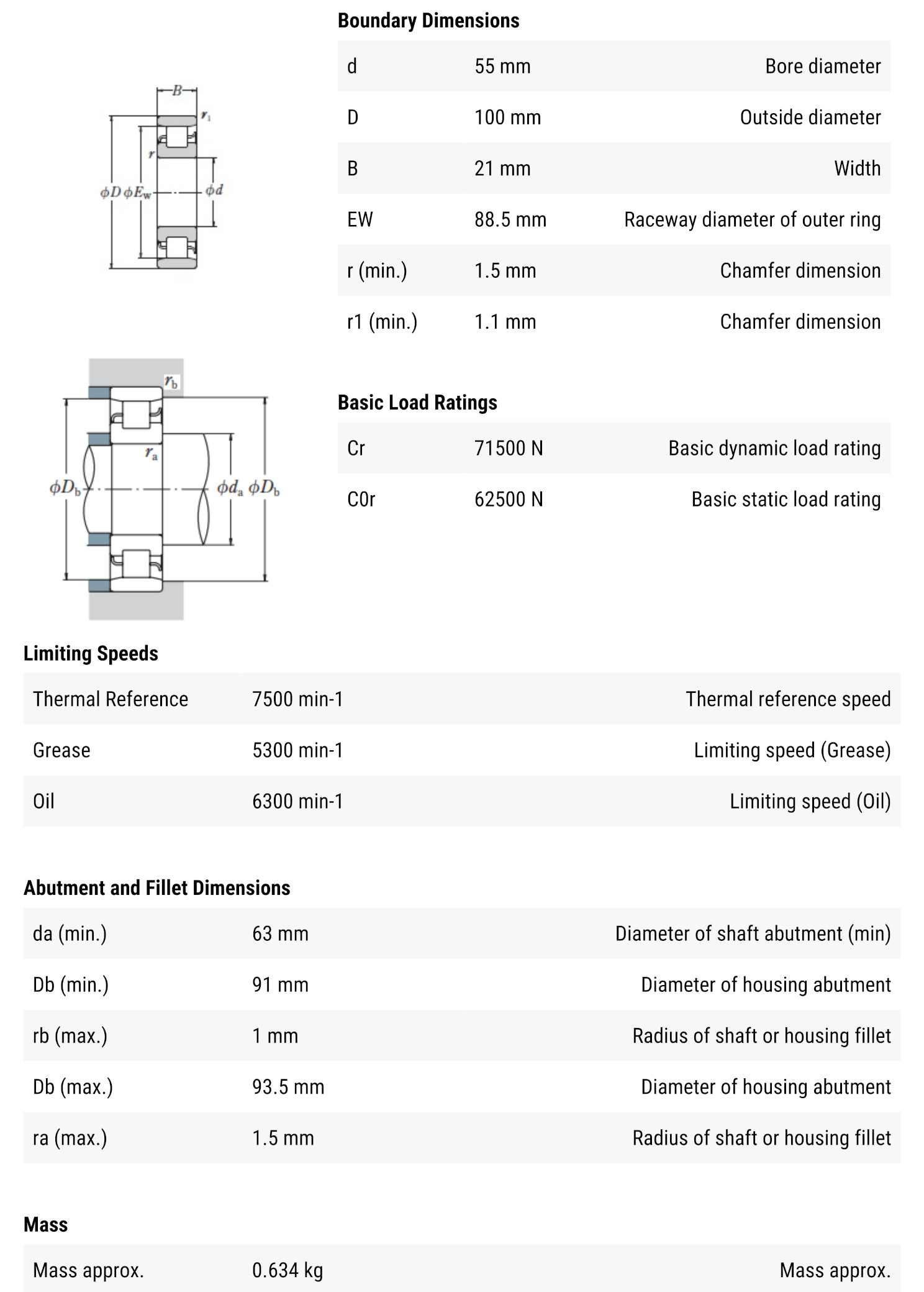 NSK N 211 W มีขนาดวงใน 55 มิล วงนอก 100 มิล หนา 21 มิล เป็นตลับลูกปืนเม็ดทรงกระบอก N แกนนอกสามารถถอดหลุดออกได้ทั้งสองด้าน ทำให้สะดวกต่อการติดตั้ง รองรับแรงโหลดได้สูงมาก