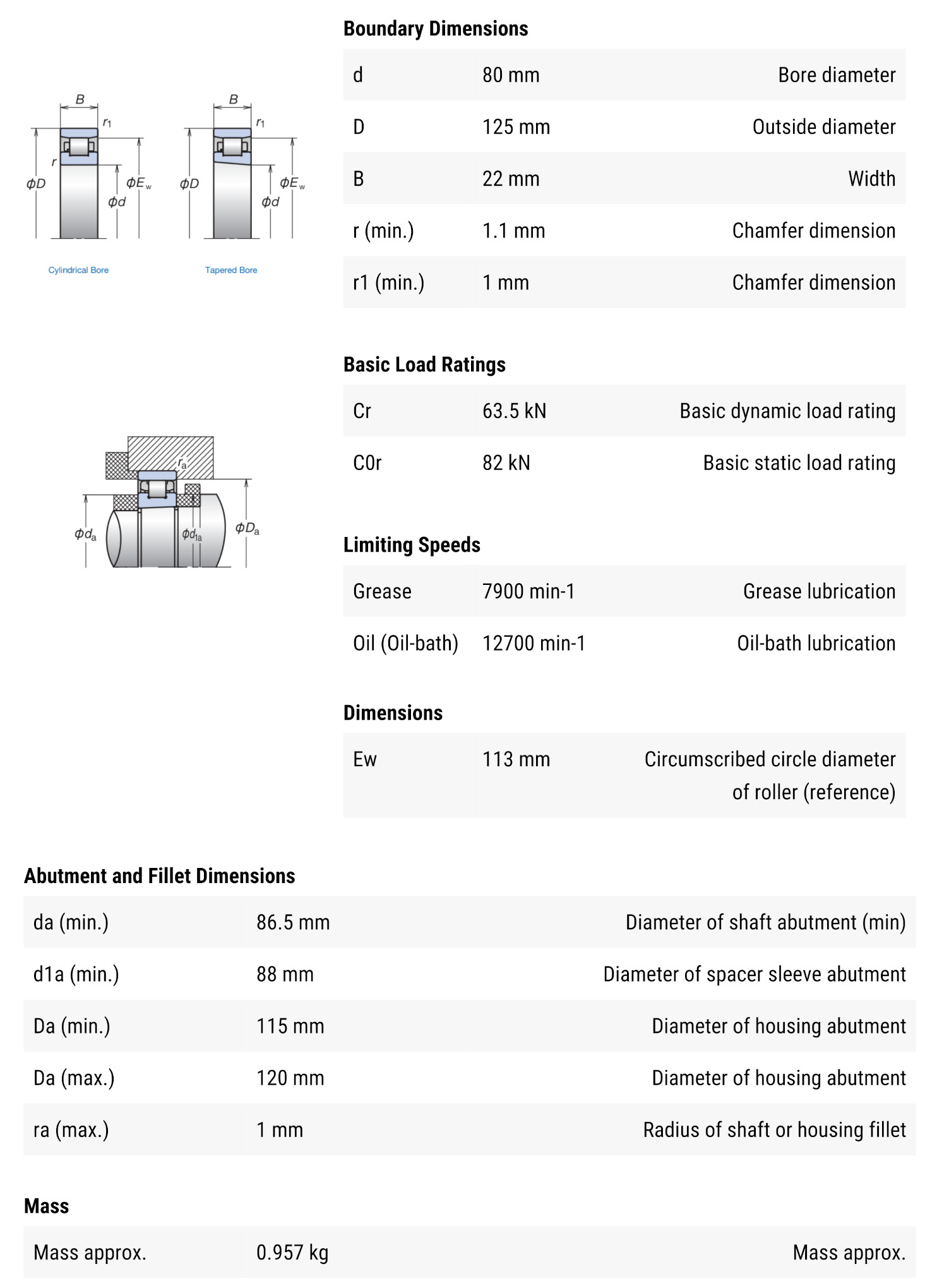 NSK N1016MRKRCC1P4 มีขนาดวงใน 80 มิล วงนอก 125 มิล หนา 22 มิล เป็นตลับลูกปืนความเที่ยงตรงสูงเม็ดทรงกระบอก รังทองเหลือง แกนในรูเรียว มีค่าความแม่นยำ Class4 แกนนอกสามารถหลุดได้ตลอดทั้งสองด้าน ทำให้สะดวกต่อการติดตั้ง รองรับแรงโหลดได้สูงมาก