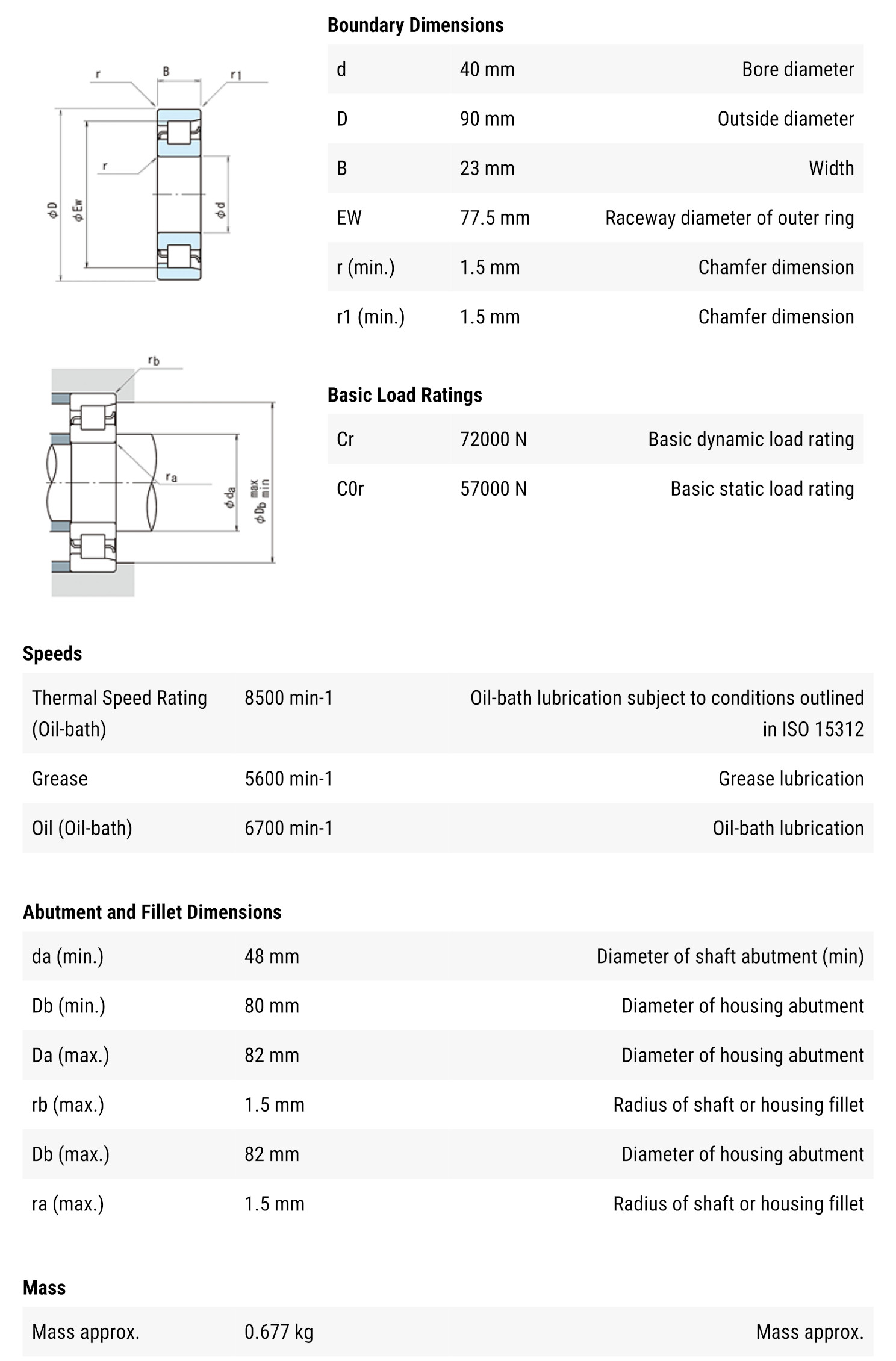NSK NF308WC3 มีขนาดวงใน 45 มิล วงนอก 100 มิล หนา 25 มิล เป็นตลับลูกปืนเม็ดทรงกระบอก NF แกนนอกสามารถถอดหลุดออกได้หนึ่งด้าน อีกด้านมีบ่าล็อคกันหลุด ทำให้สะดวกต่อการติดตั้ง รองรับแรงโหลดได้สูงมาก