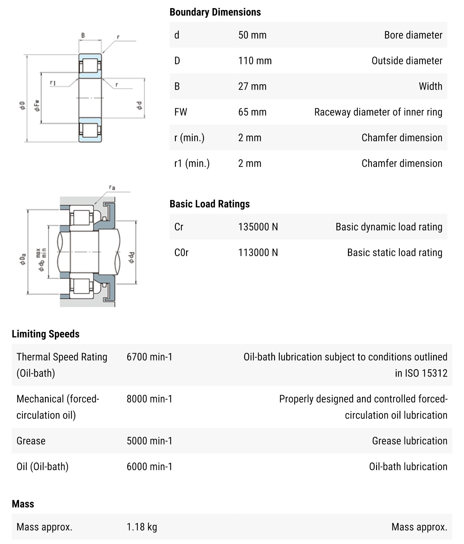 NSK NJ310EWC3 มีขนาดวงใน 50 มิล วงนอก 110 มิล หนา 27 มิล เป็นตลับลูกปืนเม็ดทรงกระบอก แกนในสามารถถอดหลุดออกได้ด้านเดียว ทำให้สะดวกต่อการติดตั้ง รองรับแรงโหลดได้สูงมาก