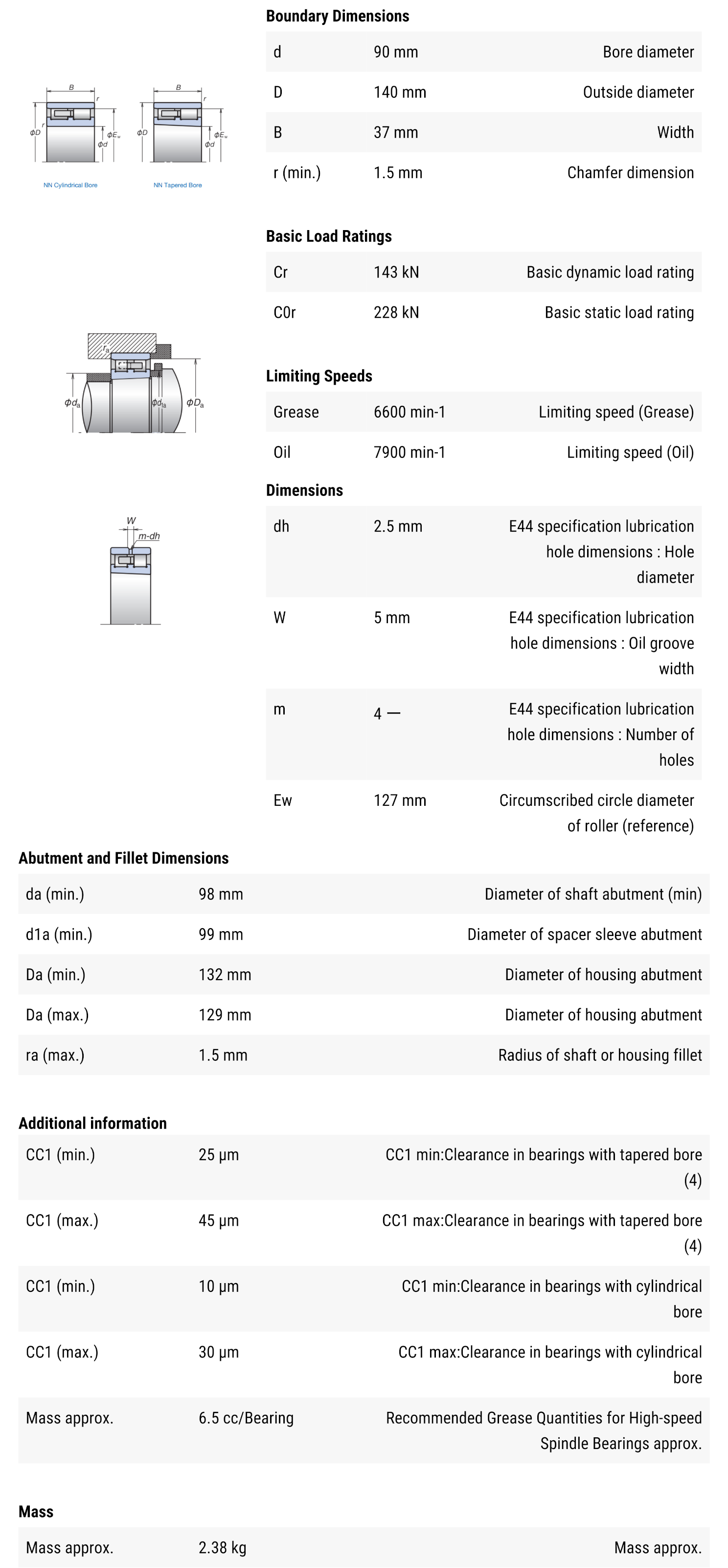 NSK NN3018MBKRCC1P4 มีขนาดวงใน 90 มิล วงนอก 140 มิล หนา 37 มิล เป็นตลับลูกปืนความเที่ยงตรงสูงเม็ดทรงกระบอกสองแถว รังทองเหลือง แกนในรูเฉียง มีค่าความแม่นยำ Class4 แกนนอกสามารถหลุดได้ตลอดทั้งสองด้าน ทำให้สะดวกต่อการติดตั้ง รองรับแรงโหลดได้สูงมาก